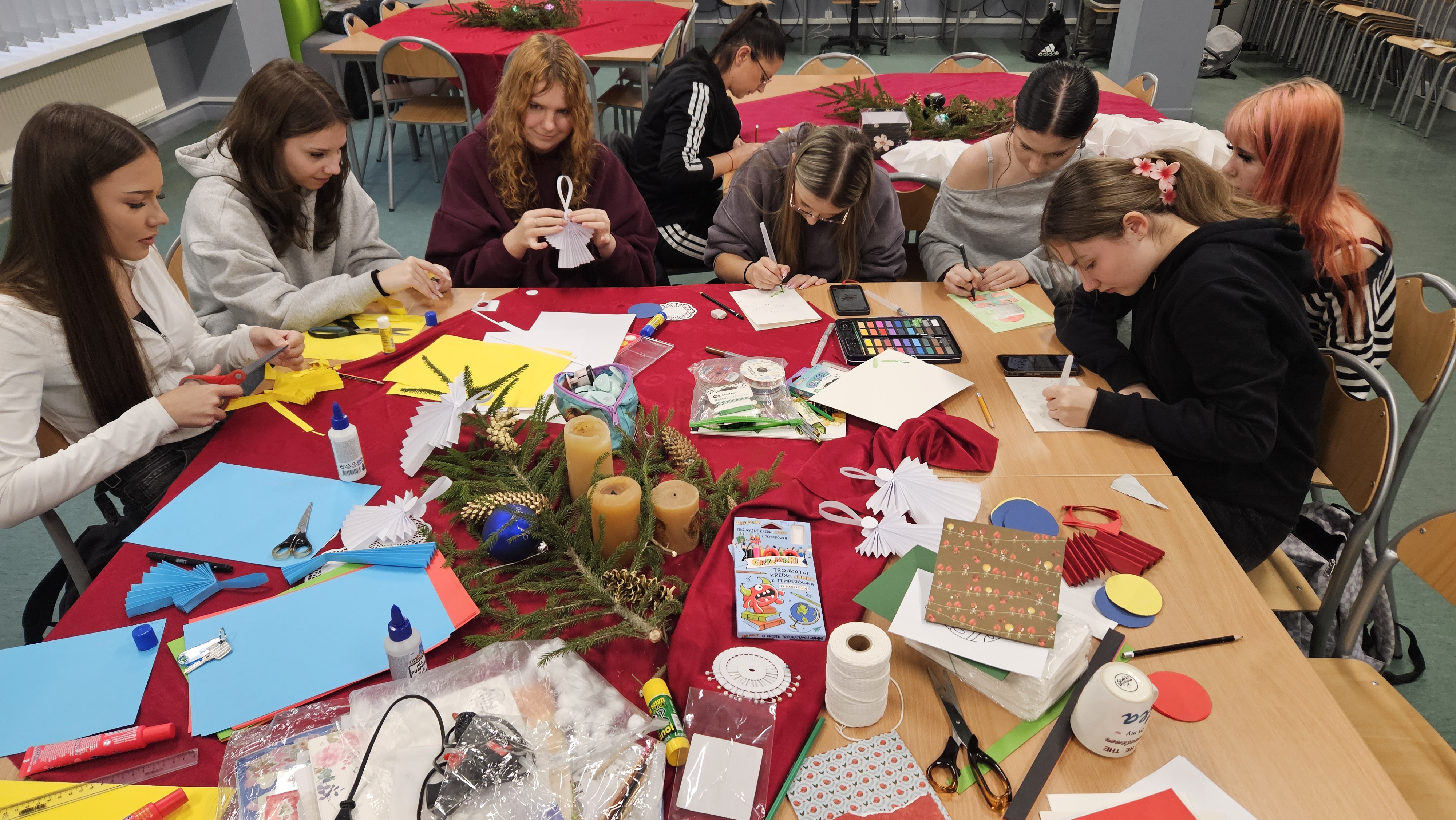 9 grudnia w czytelni szkolnej zorganizowano warsztaty świąteczne, podczas których uczniowie tworzyli unikalne dekoracje. Ozdoby posłużą do dekoracji wnętrz naszej szkoły lub staną się wyjątkowym prezentem dla najbliższych.